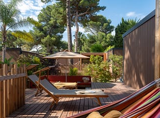 Pour ceux qui souhaitent le confort d’une location vacances, notre camping propose un large éventail de mobil-homes, bungalows, cottages et chalets organisés en quartiers thématiques, chacun avec sa propre atmosphère. Le quartier Okavango et ses 58 cottages à l’ambiance africaine, nichés dans une belle végétation généreuse. Le quartier Les Créoles, inspiré des cases antillaises, coloré et dépaysant. La Pinède, ombragée et fraîche sous ses grands pins, idéale pour les familles avec de jeunes enfants. Les mobil-homes sont équipés de cuisines complètes, de literies soignées et de terrasses privatives. Les chalets et cottages haut de gamme ajoutent encore à cela des finitions premium, deux salles de bain pour les plus spacieux, et des espaces extérieurs généreux où il fait bon vivre au soleil. Pour un couple, une famille ou un groupe d’amis, vous trouverez ici la location qui correspond exactement à ce dont vous avez envie.