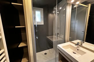 1 ausgestattete Küchenzeile (alle notwendigen Küchenutensilien, Spülbecken, Kühlschrank mit Eisfach, Herdplatten, Mikrowelle/Grill, Schränke)