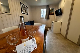 1 Essbereich mit Ausziehcouch (Schlafplatz für eine Person) und Fernseher